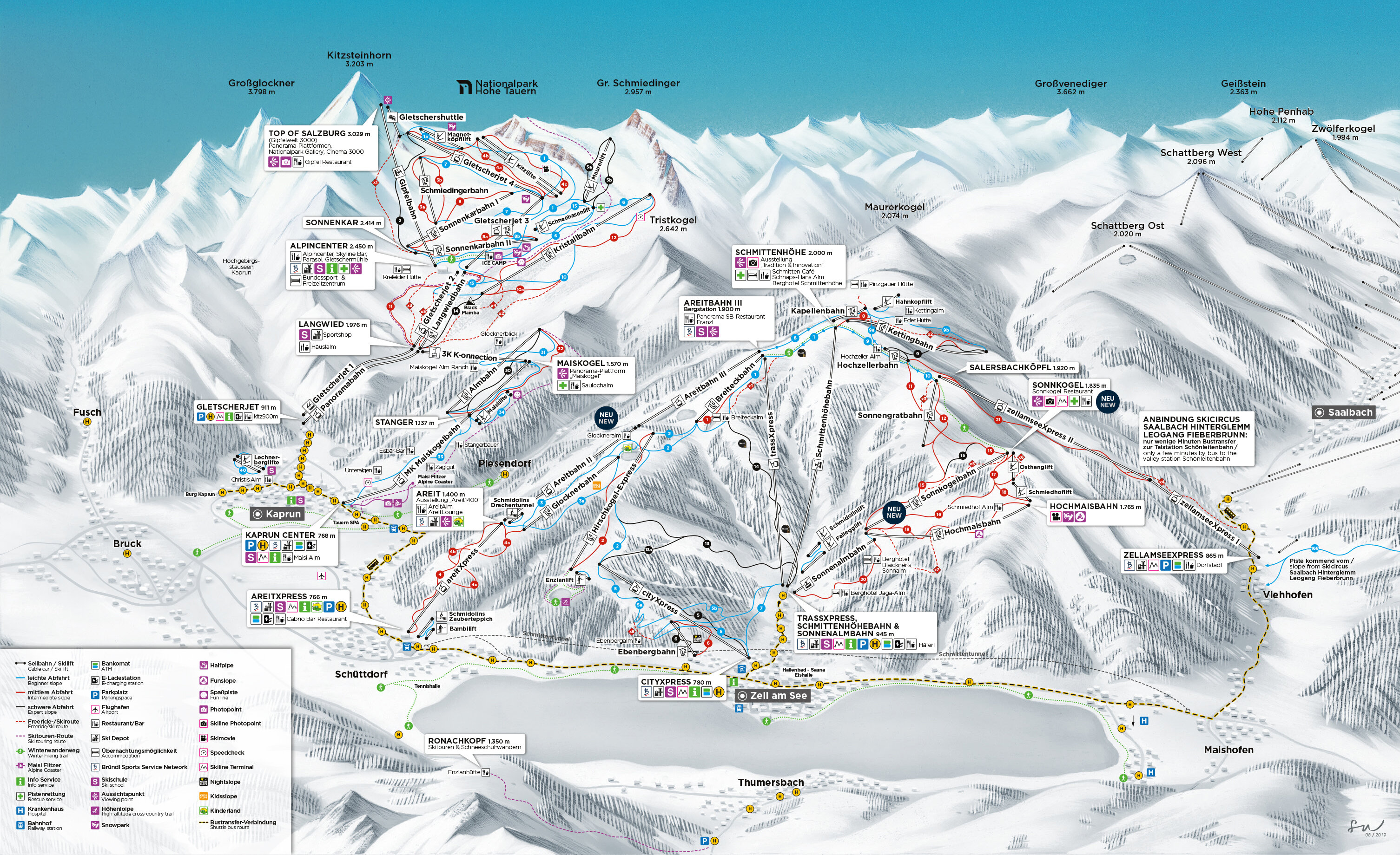 Kom skiën op de Schmittenhöhe met uitzicht op de betoverende Zellersee terwijl in de verte de 3.029 meter hoge Kitzsteinhorn van Kaprun lonkt. Ontdek het veelzijdige skigebied en bekijk de mogelijkheden op de pistekaart. De skipas van Zell am See is ook geldig in Kaprun en Saalbach. Geniet in de zomer van het schone water, groene ligweides en heerlijke bergwandelingen.